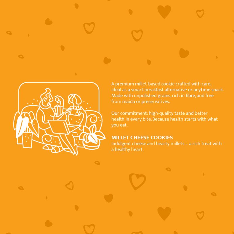 Whole Wheat Flour 13% , Multigrain Flour 10% (Thinai, Samai, Varagu, Jowar), Cheese Powder