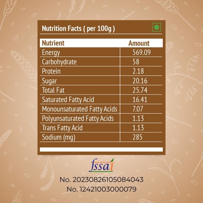 Coffee Powder 0.5% (0% Chicory 100% Coffee), Raising Agents (INS 500 - Baking Soda),Emulsifier (INS 322 from Soya),Salt, Mixed Tocopherols